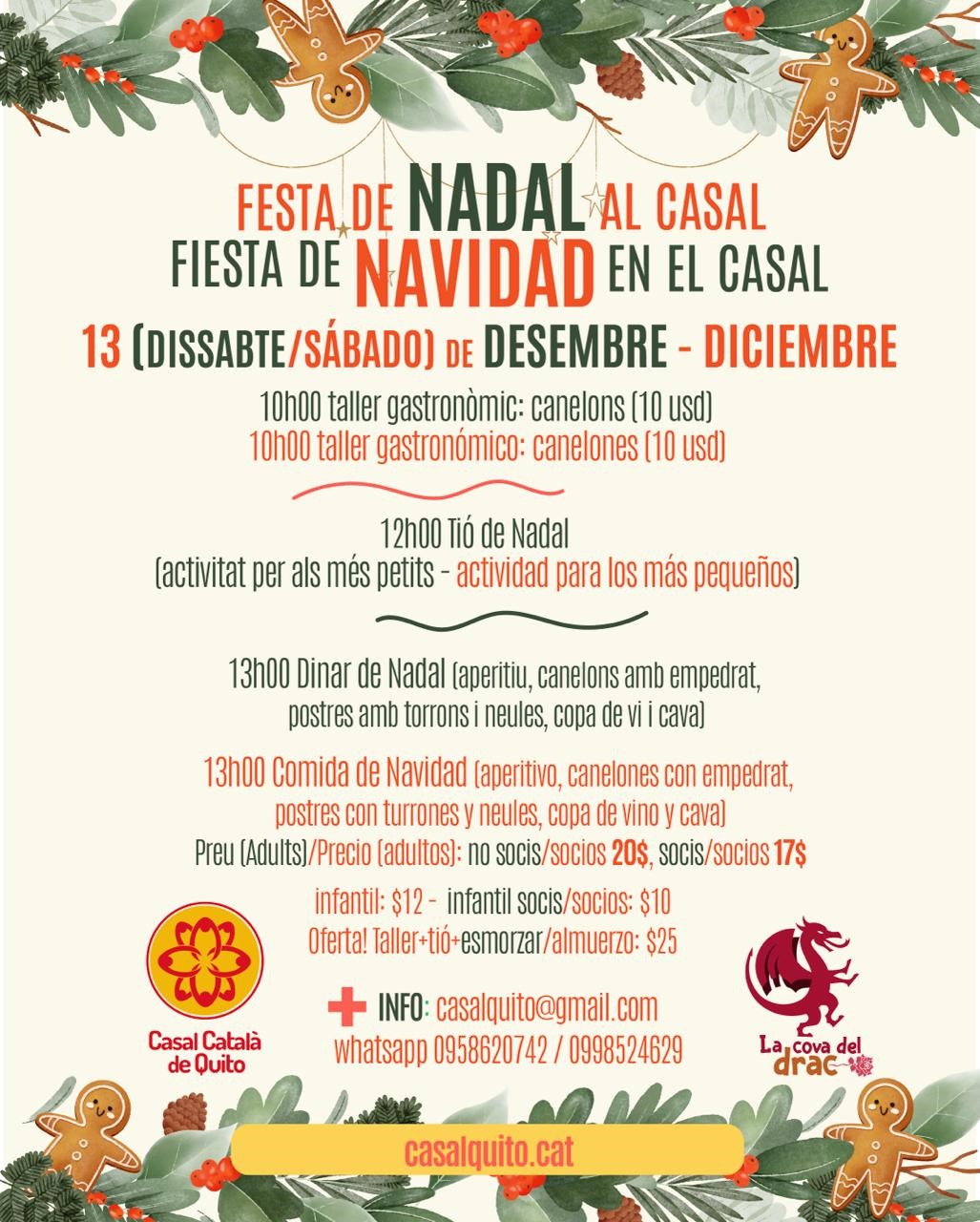Almuerzo navideño: Aperitivo, canelones,turrones, vino y cava) (13H)